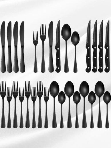 24 Piece Silverware Set with Steak Knives - Black Flatware for a Set of Four